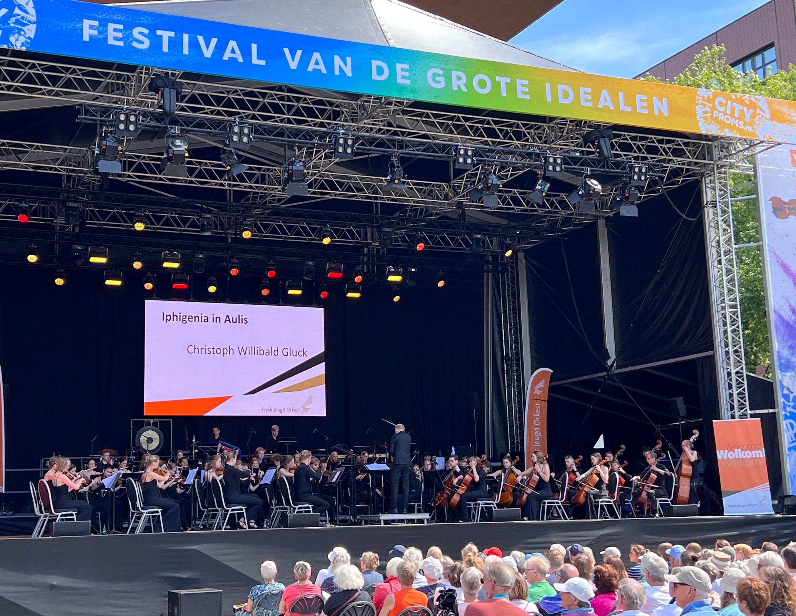 's Middags speelde het Frysk Jeugd Orkest op het hoofdpodium van het festival. Het zonnige plein en de terrasjes zaten vol met enthousiast publiek.